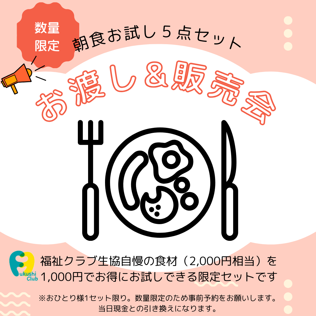 好評につき、期間・エリア限定で実施中。福祉クラブのこだわりの食材をお試しできる限定セットです。宅配サービスや生協に興味のある方にお知らせください。