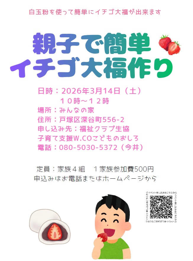 戸塚 親子で簡単イチゴ大福作り【2026年3/14】