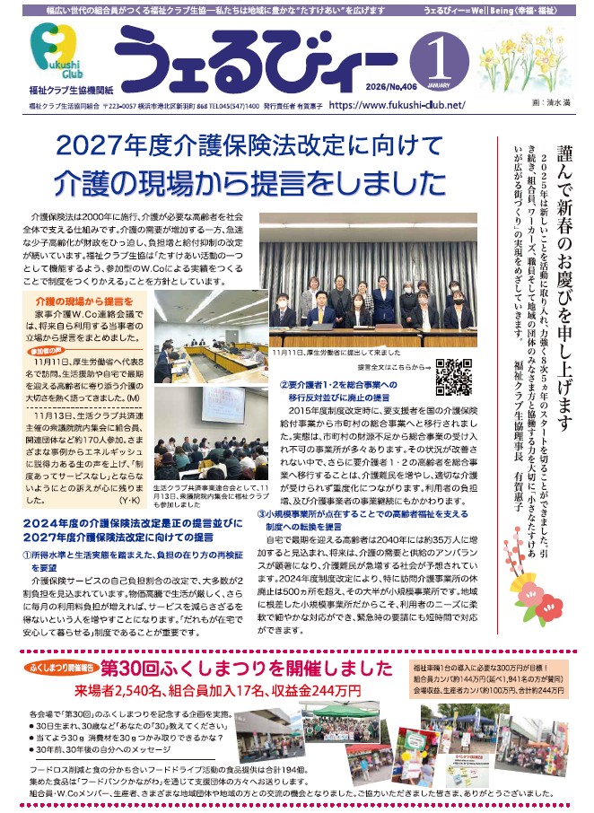 福祉クラブ生協の機関紙「うェるびィー」は、消費材やワーカーズコレクティブの活動などを組合員に伝えています。