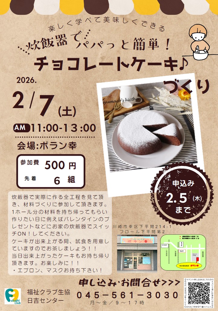 炊飯器でパパっと簡単に。楽しく学んで美味しくできるケーキづくりをお子さんとご一緒に参加してみませんか。