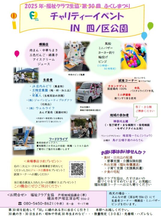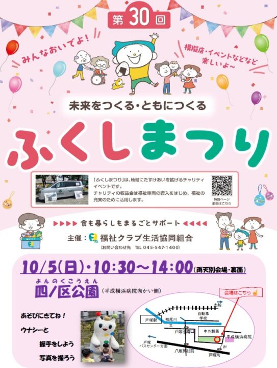 ご家族皆さんで遊びに来てください。第30回ふくしまつりを記念して「30」につながりのある方は、30名先着順で当日くじ引きをどうぞ!
