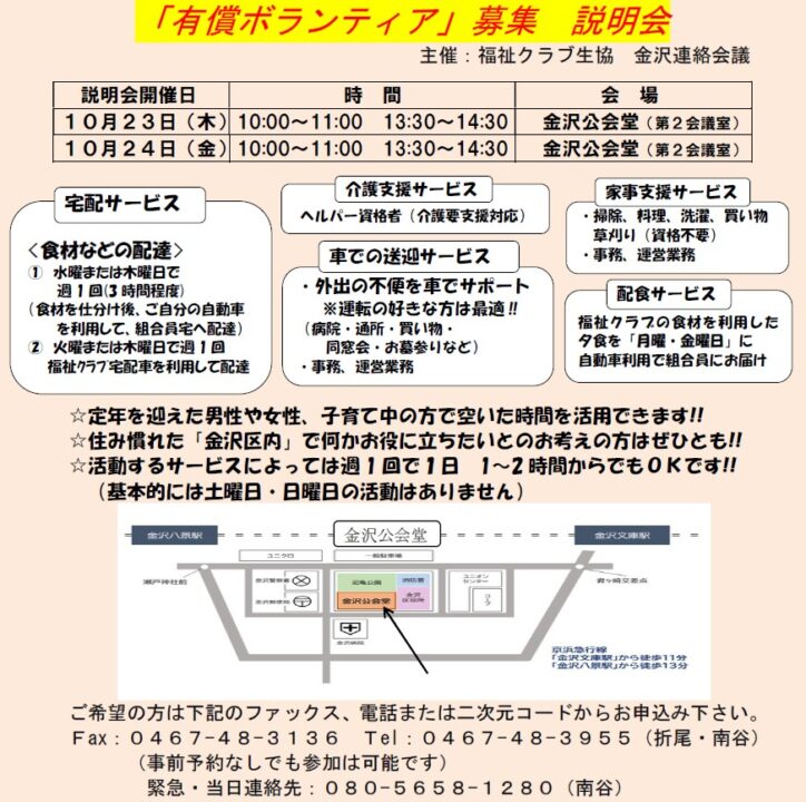 金沢  有償ボランティア募集説明会【2025年10/23、24】