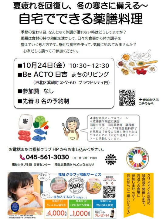 お問合せ:045ー561-3030 / 福祉クラブ生協日吉センター 月~金 9時~17時