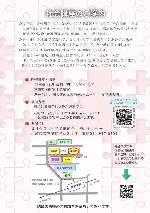 宮前区 超高齢社会を見据えて一緒に考えよう 社会講座【2025年11/10】
