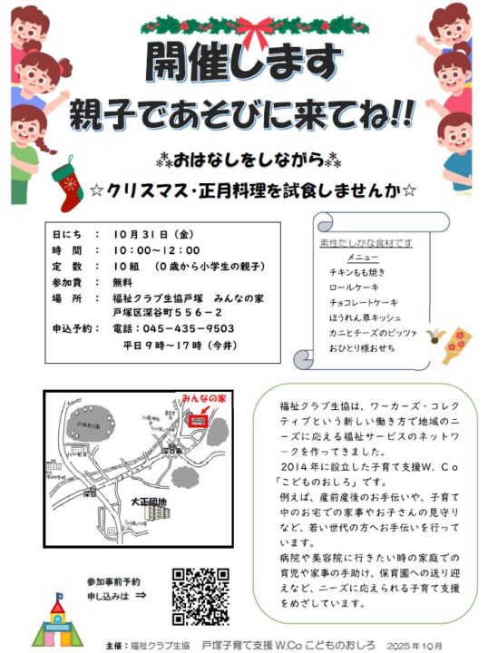 戸塚 親子でクリスマス・正月料理の試食会【2025年10/31】