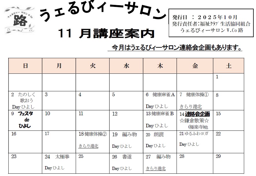 <講座案内> 港北区うェるびィーサロン「路」【2025年11月】