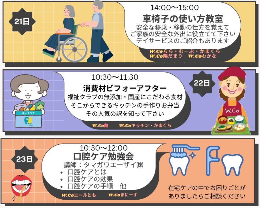 鎌倉市 鎌倉センター「スペースゆう」リニューアルオープン記念企画 5DAYs【2026年1/19~23】 各W.Coから在宅支援のヒントをご紹介します。きれいになった「スペースゆう」を見に来てください *参加費無料 日時:2026年1月19日~23日 の5日間 場所:福祉クラブ生協鎌倉センター内 (台5-2-22) 「スペースゆう」は、写真左側の建物です。 お申込みお問合せ:福祉クラブ鎌倉センター0467-48-3955 月~金 9時~17時 参加予約はこちら 前へ 一覧へ戻る 次へ