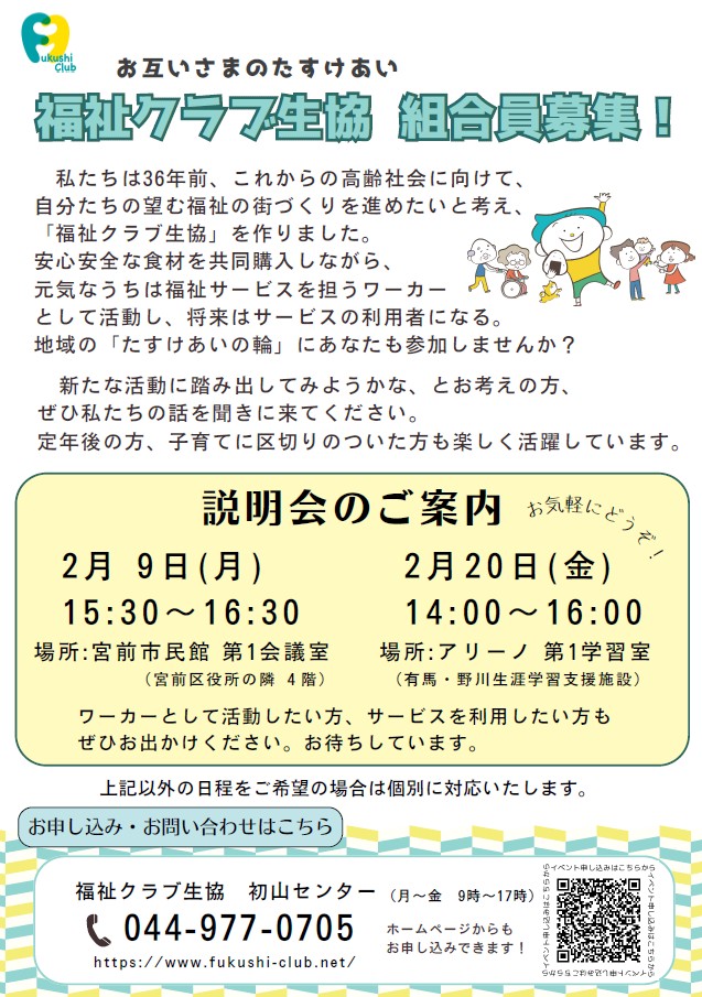 宮前区 組合員募集 説明会のご案内【2026年2/9、20】