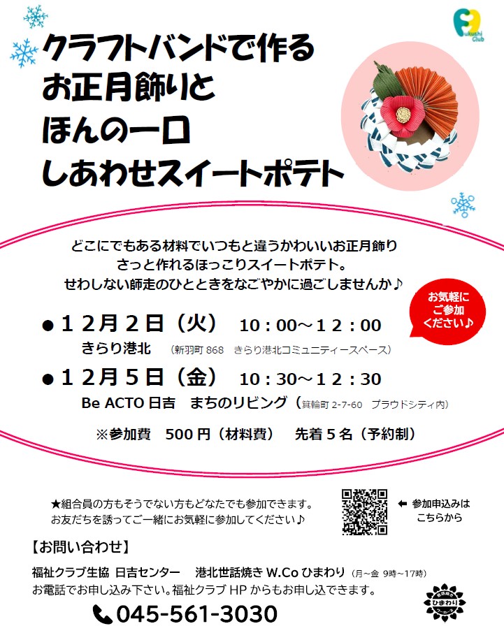 港北区 クラフトバンドで作るお正月飾り【2025年12/2、5】