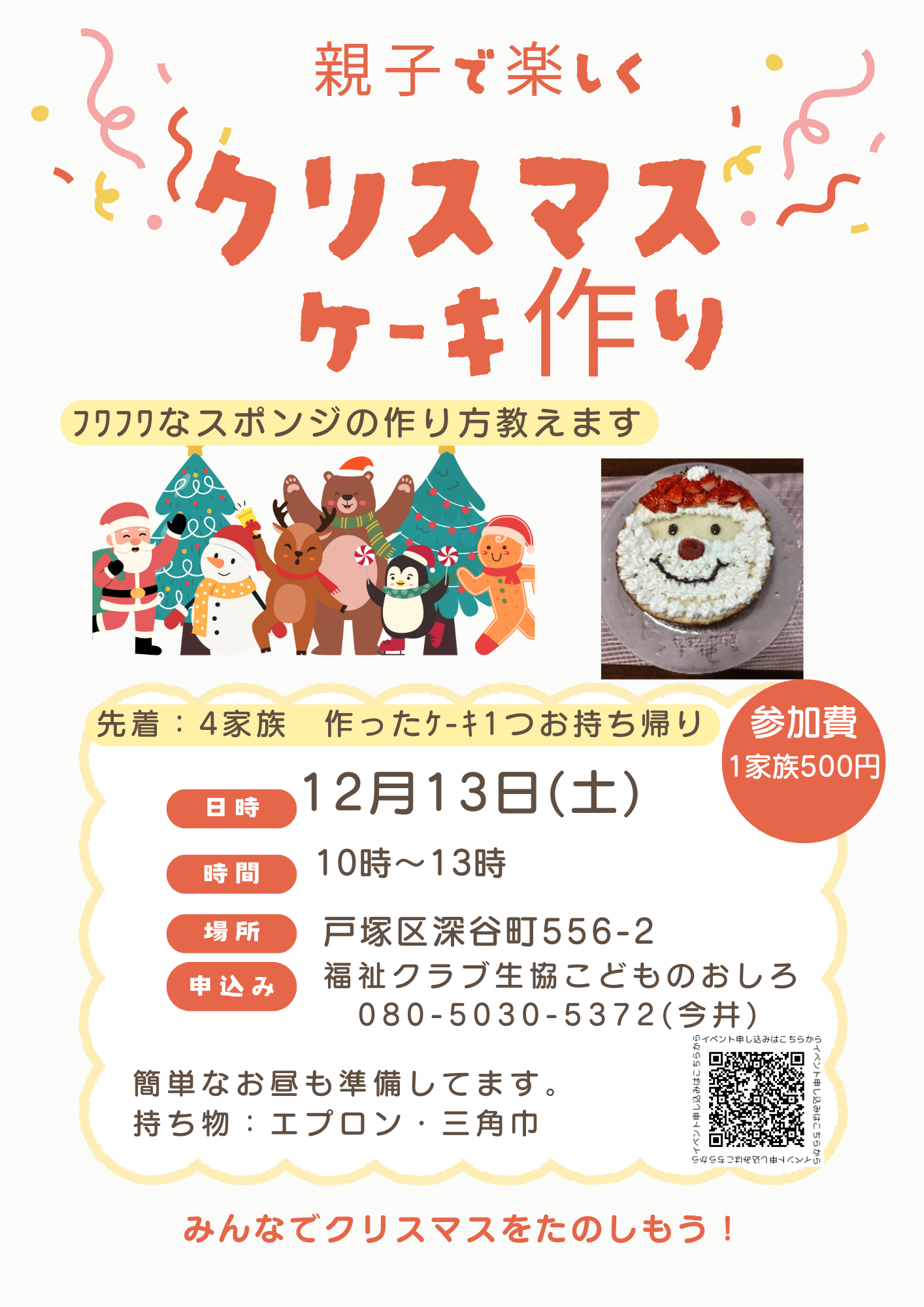 戸塚 親子で楽しくクリスマスケーキ作り【2025年12/13】