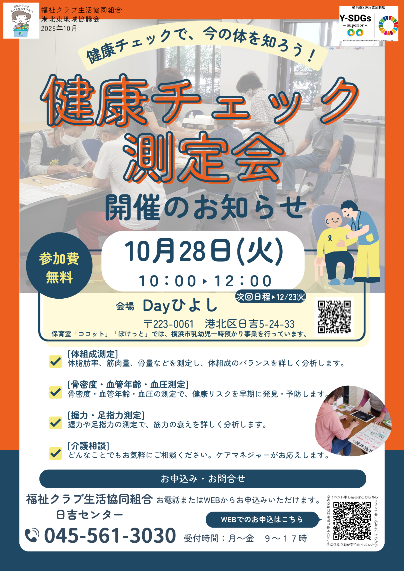今の自分の状態を知るところから健康への第一歩!2ヶ月に一度、同じ会場で定期開催しています。 さまざまな暮らしのご相談などもお気軽にどうぞ。