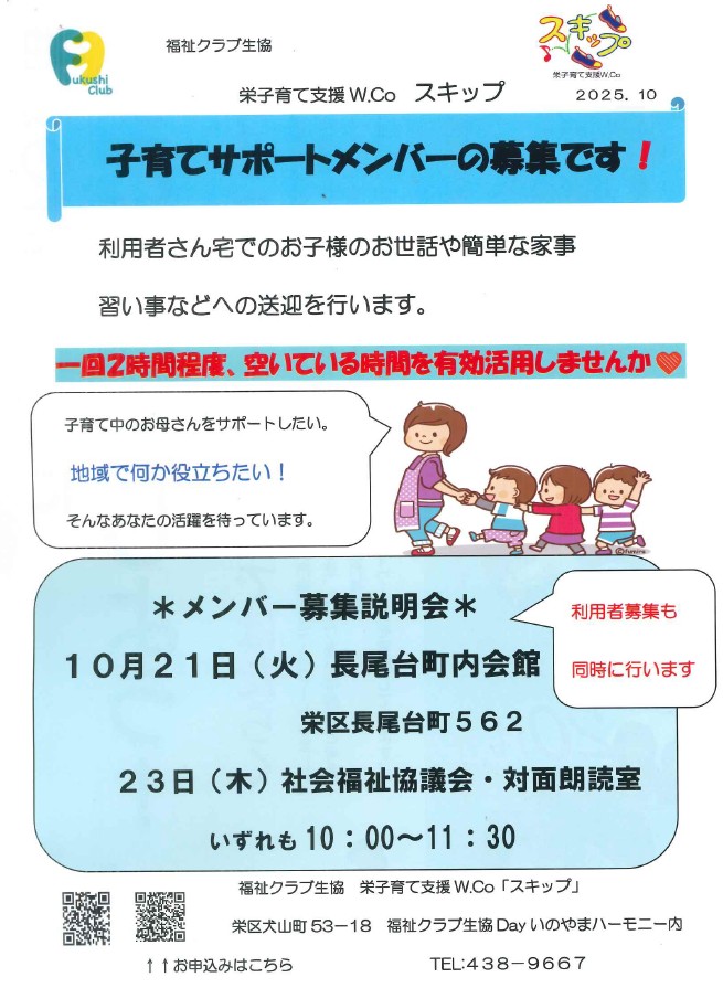 栄区 子育てサポートメンバー募集【説明会2025年10/21、23】