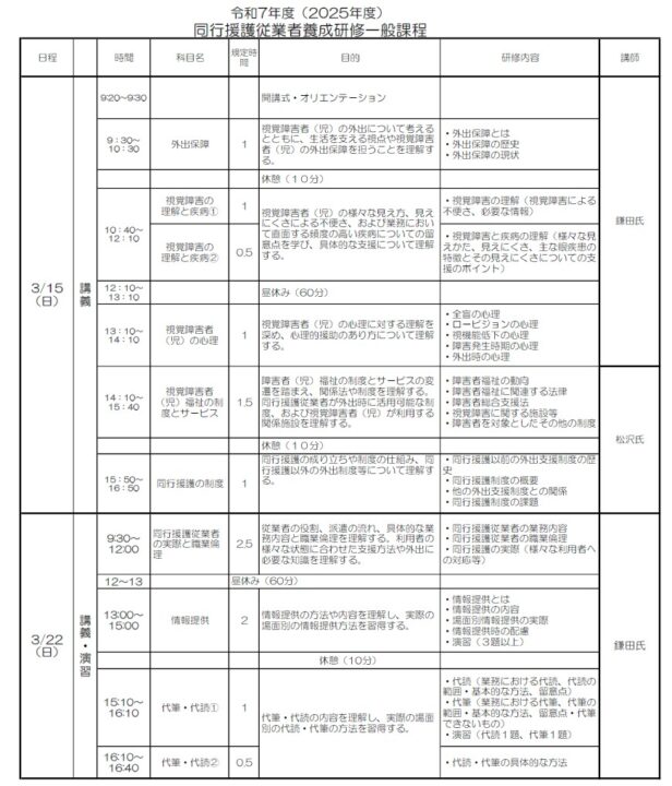 「同行援護従業者養成研修一般課程」の開催【2026年3月】受講申し込み3/6〆