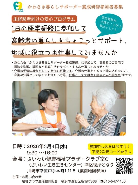 かわさき暮らしサポーター養成研修 講座開催【2026年3/4】